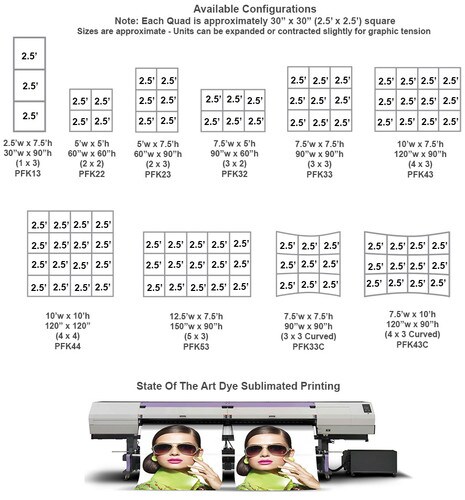 Size: | 30"w x 90"h, 60"w x 60"h, 60"w x 90", 90"w x 60"h, 90"w x 90"h, 90"w x 90"h Curved, 120"w x 90"h, 120"w x 90"h Curved, 120"w x 120"h , 150"w x 90"h |