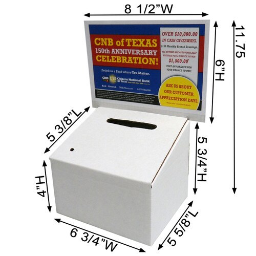 This small cardboard ballot box was made for small counters where space is limited. Retail stores put limitations on how much space they allow for marketing lead generation boxes. This is the perfect small raffle box to generate lots of leads.